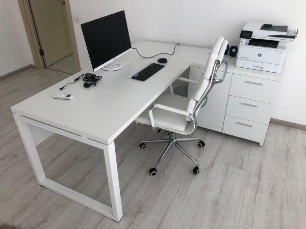 Кабінет. Стіл 1800х800х750Н + тумба 800х470х750Н (напрямні шухляд Метабокс). Стільниця 36 мм. Опори метал 60х40 білий глянець.